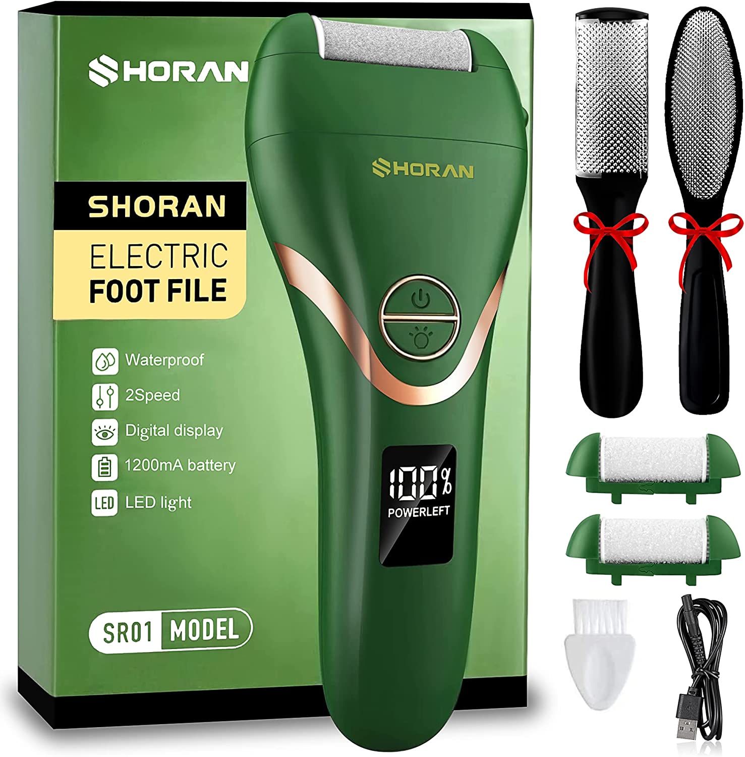 "【Komfort und Effizienz】Der SHORAN Hornhautentferner Elektrisch Stark ist ein hochleistungsfähiges Werkzeug, das abgestorbene Hornhaut und starke Haut an der Ferse schneller und bequemer entfernen kann, als herkömmliche Hornhautraspel, Hornhauthobel, Fussstein, Hornhautpflaster und Fußpeelings. Es wird mit 2 zusätzlichen Ersatzrollen geliefert, um verschiedene Fußprobleme zu lösen und glatte Füße zu erhalten und eignet sich sowohl für Männer als auch für Frauen. 【2 Geschwindigkeiten und LED-Spot】Der Hornhautentferner Elektrisch SHORAN verfügt über einen stabilen, leistungsstarken Motor mit 2 Geschwindigkeiten: 17.000 U / min bei niedriger Geschwindigkeit für zarte Haut und 23.000 U / min bei hoher Geschwindigkeit für Horn Haut. Die LED-Scheinwerfer an Ihrem elektrischen Fußpflegegerät helfen Ihnen, die Details Ihrer Füße auch im Dunkeln klar zu erkennen und harte Haut leicht zu entfernen, so dass Sie mehr Energie sparen als bei anderen Modellen. 【Hochleistungsakku und digitale Anzeige】Der Profi Elektrischer Fußschleifer von SHORAN ist mit einem 1200 mAh Lithium-Ionen-Akku ausgestattet, der getestet wurde und nach einer vollen Ladung bis zu 8 Stunden dauert. Dank der digitalen Anzeige auf dem Bildschirm können Sie den Ladezustand und den Betriebszustand der Maschine während des Gebrauchs genau verfolgen, um den besten Entfernungseffekt zu erzielen.".