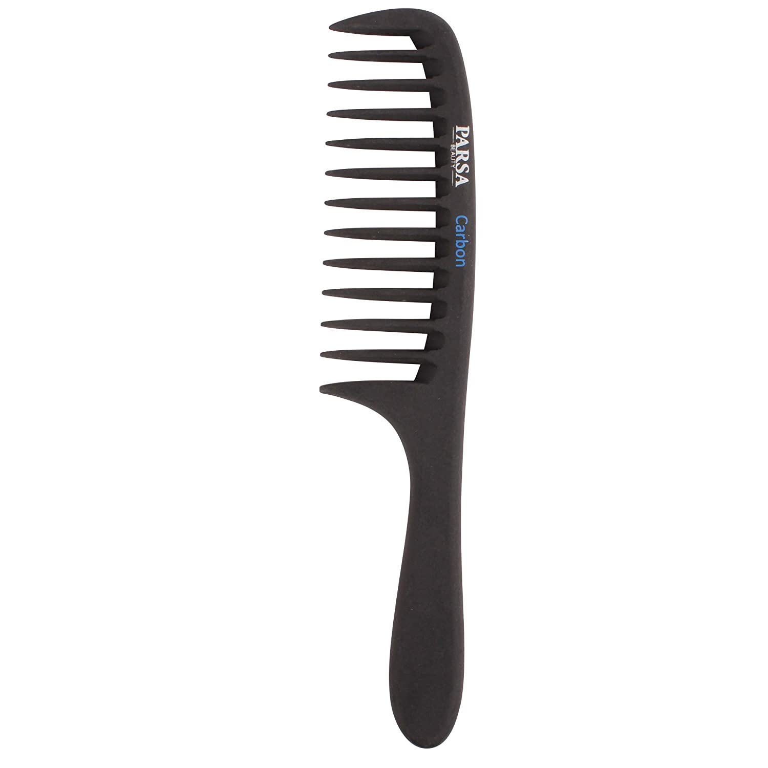 PARSA Beauty Styling Kamm Carbon Kamm mit Griff und grober Zahnung Griffkamm grob für einfaches Styling Karbon Styling. Unser Carbon Kamm ist robust und langfristig beständig. Er ist ideal geeignet, um kurzes bis langes Haar zu entwirren und zu stylen. Der Kamm ist für alle Haartypen geeignet und es wird ein schonendes und sanftes Styling ermöglicht, dank der abgerundeten Kanten. Der Entwirrungskamm kann problemlos auch feuchtes Haar bearbeiten und wirkt statischem und aufgeladenem Haar entgegen. Dank der extra breiten Zinken können die Haare problemlos entwirrt werden, ohne sie zu beschädigen. Durch die porenfreie Oberfläche des Carbon Kammes bleibt er biegsam, bruchfest, antistatisch und resistent gegen verschiedene Haarkosmetika. So ist er vielseitig einsetzbar und garantiert ein professionelles Styling-Ergebnis.
