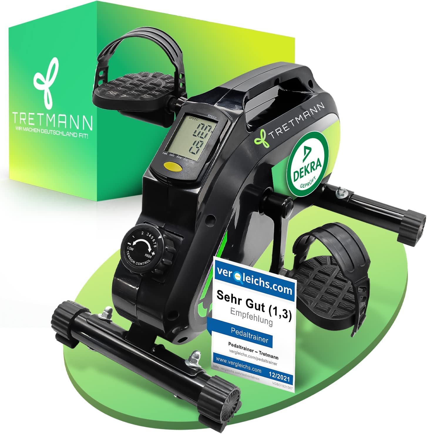 Wow - das ist das Wort, das einem sofort in den Kopf kommt, wenn man etwas für seinen Körper getan hat. Mit dem Tretmann Pedaltrainer PRO Set extra Leise gelenkschonend ink. Befestigungsband -DEKRA Geprüft- Beintrainer für Senioren erhalten Sie ein Produkt, dass Ihre Beweglichkeit und Ihre Gesundheit in kürzester Zeit wiederherstellen und Ihnen das Gefühl eines flüsterleisen Fahrradfahrens vermitteln wird. Dank des *TX Riemen* erhalten Sie ein hautfreundliches und dennoch leistungsstarkes Trainingserlebnis. FÖRDERT GESUNDHEIT: Unsere hochwertige Heimtrainings-Lösung hilft Ihnen, Gewicht zu verlieren und Gelenkschmerzen vorzubeugen. Aktivieren Sie Ihre Durchblutung und mobilisieren Sie Ihre Gelenke. Unser Pedaltrainer kann bei Problemen wie Arthrose, Gelenkschmerzen und Muskelschwund unterstützen. Durch das Befestigungsband ist der Beintrainer rutschsicher und 100 % standfest. Der Heimtrainer passt in jedes Wohnzimmer und eignet sich ideal als Geschenk für Ihre Liebsten. Geburtstagsgeschenk, Muttertag oder Weihnachtsgeschenk - der Pedaltrainer passt in jedes Zuhause. Bewegung hält nicht nur jung, sondern ist auch ein Garant für ein erfolgreiches Training. Unser Produkt wurde mit Ingenieuren, Ärzten und Physiotherapeuten entwickelt, um Ihnen das Beste zu bieten. Die Nutzung des Mini Heimtrainers ist bis zu einem Nutzergewicht von 210 kg möglich. Machen Sie sich bereit, mit uns Deutschland fit zu machen!