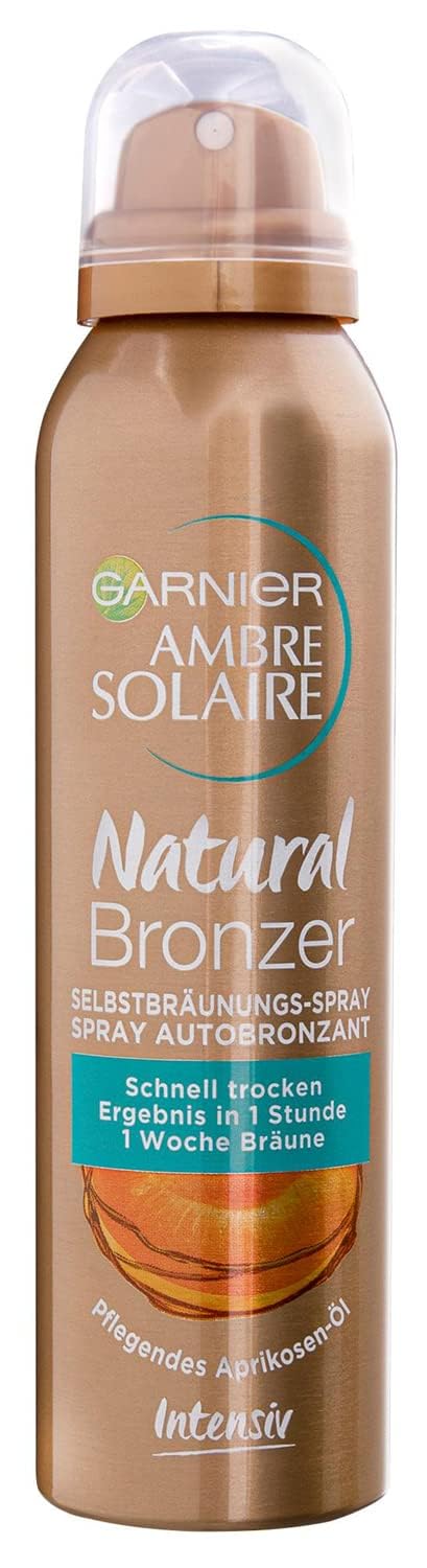 Das Ambre Solaire Natural Bronzer Selbstbräunungs-Spray von Garnier ist die perfekte Lösung für eine gesund aussehende und langanhaltende Bräune. Mit dem Spray kann man sich ganz einfach und bequem selbst bräunen, ohne sich der Sonnenbrandgefahr oder dem Solarium aussetzen zu müssen. Der Spray ist einfach aufzutragen, erfordert keine speziellen Anwendungstechniken und die Bräune ist gleichmäßig und leicht. Zusätzlich spendet Aprikosenkernöl der Haut Feuchtigkeit und sorgt somit für ein geschmeidiges und glattes Hautgefühl. Dank des Sprühnebels ist das Produkt auch für trockene Hautpartien geeignet. Mit dem Garnier Ambre Solaire Natural Bronzer Selbstbräunungs-Spray erhalten Sie eine natürlich aussehende Bräune und genießen ein gesundes und gepflegtes Hautbild.