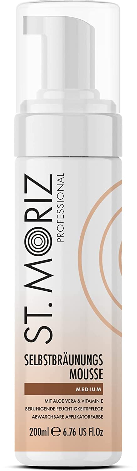 Unser St. Moriz Professional Selbstbräunungsmousse mit Aloe Vera Vitamin E ist ein veganer Selbstbräuner, der Ihnen einen strahlend schönen, sonnengebräunten Teint verleiht. Mit der vorgetönten Applikatorfarbe lässt sich das Mousse einfach und gleichmäßig auftragen. Wir haben unsere Formel mit Aloe Vera und Vitamin E angereichert, die Ihre Haut pflegen und ihr ein seidig glattes Gefühl verleihen. Verpackt in einer praktischen 200ml Dose ist unser Selbstbräunungsmousse ein unverzichtbarer Begleiter für Ihren Alltag. Der Inhalt der Dose wird beim Öffnen nicht auslaufen und lässt sich einfach und hygienisch dosieren. Unser Selbstbräuner ist frei von Parabenen, Alkohol und Parfüm und verleiht Ihrer Haut einen natürlichen Bräunungseffekt. Dank der speziellen Formel trocknet er schnell und hinterlässt keine unerwünschten Flecken. Genießen Sie Ihren perfekt gebräunten Teint mit dem veganen Selbstbräuner von St. Moriz.